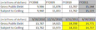 All references to 90’s R&B groups aside, let’s take a serious look at this. We are about ready to have a showdown on the debt ceiling. As of yesterday, January 6, 2010, the federal debt subject to the debt ceiling was just shy of $14T. The current ceiling is $14.294T and we will reach that figure sometime between March and May this year. The date cannot be exactly determined because day-to-day receipts and expenditures are not fixed – just like your own budget. (See this entry from 2009 to get a little more detail on short-term Treasury securities.) But, the showdown is coming; there is no doubt about that.