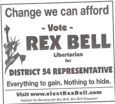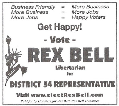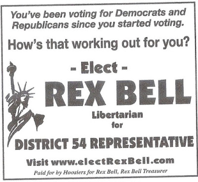 Rex Bell Newspaper Ads Start This Week By LPMC on October 3, 2010 in Uncategorized Rex Bell Libertarian for District 54 Representative newspaper ads begin to run this week.Rex won 8 of 59 precincts for the same race in 2008.Here is a picture of Rex Bell, followed by the advertisements: